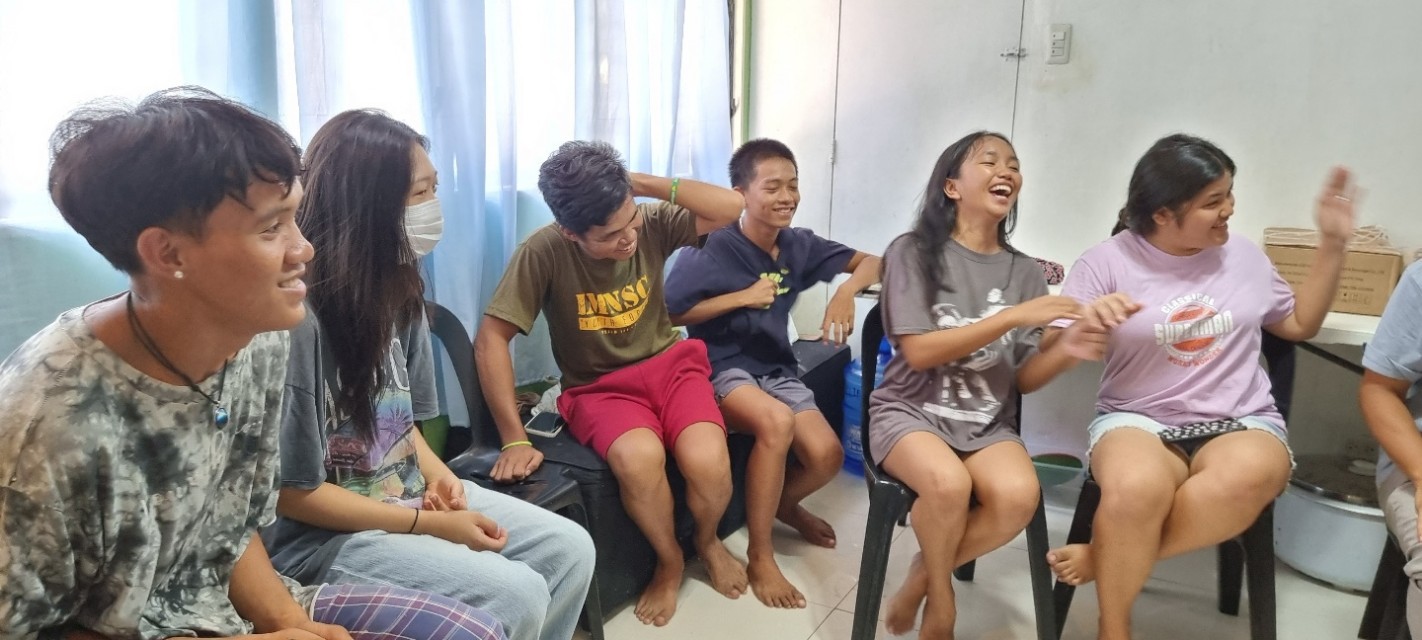 청년들은 기쁜 마음으로 아이들에게 율동을 보여주며 음식을 나눠 주었습니다.