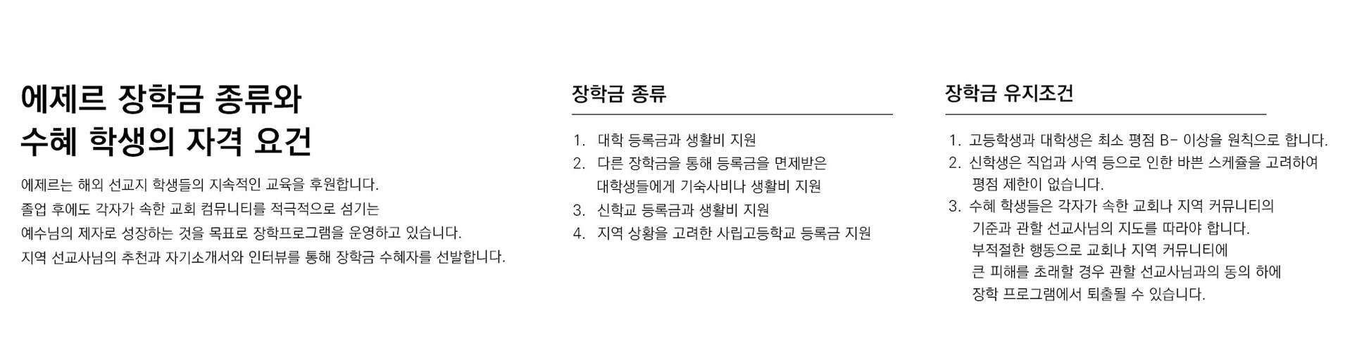 에제르 장학금 종류와